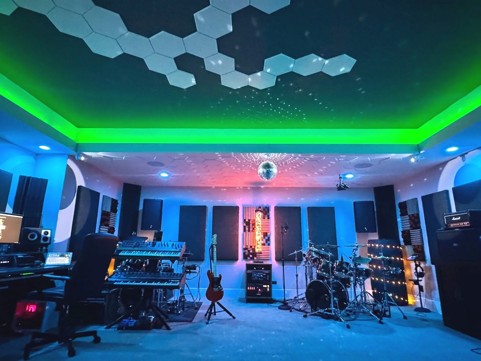 High-end recording studio with top selection of mics, amps, analog compressors, pianos, synths, drums, and percussion. Ready for your own guitars or other instruments. When ready, host a wrap party with pro karaoke on your tracks!